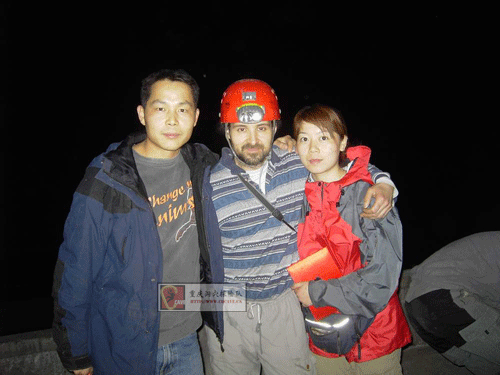 我和胡斌与卡罗斯老师合影。卡罗斯做事很严谨,而且从不会打击你,当你有哪怕一点点成绩他也会拼命的表扬,而且从不以探洞老手自居,当他发现我的裤脚长了,马上蹲下身子给我挽上裤脚,还随便给我系紧鞋带,让我感动不已